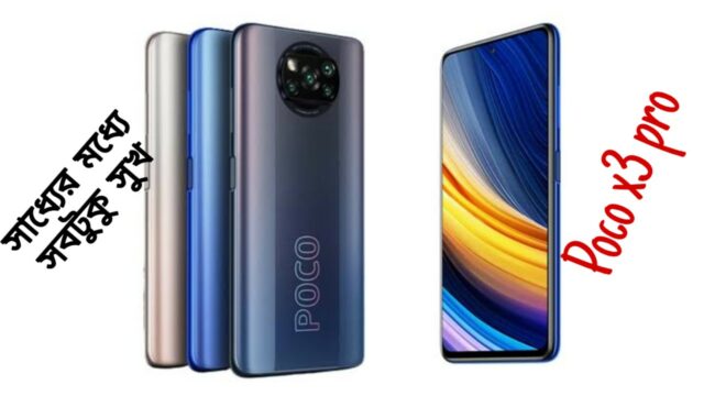 পোকো এক্স ৩ প্রো, বর্তমান বাজারে অন্যতম সেরা ফ্ল্যাগশিপ কিলার অ্যান্ড্রয়েড মোবাইল ফোন। ৬.৬৭'' এর ফুল এইচ-ডি প্লাস রেজুলেশনের মোবাইলটি তে রয়েছে ফ্ল্যাগশিপ গ্রেডের স্ন্যাপড্রাগন ৮৬০ চিপসেটের প্রোসেসর যা ৭ ন্যানোমিটার আর্টিটেকচারে প্রস্তুত। মোবাইলটি তে পাওয়ার দিতে রয়েছে ৫১৬০ মিলি অ্যাম্পিয়ারের লায়ন-পলিমারের ব্যাটারি, যা ৩৩ ওয়াটের ফার্স্ট চার্জারে মাত্র ৫৯ মিনিটে ১০০% চার্জ হতে সক্ষম। বাজারে ৬ জিবি ও ১২৮ জিবি ভ্যারিয়েন্টে মোবাইলটি পাওয়া যাচ্ছে।