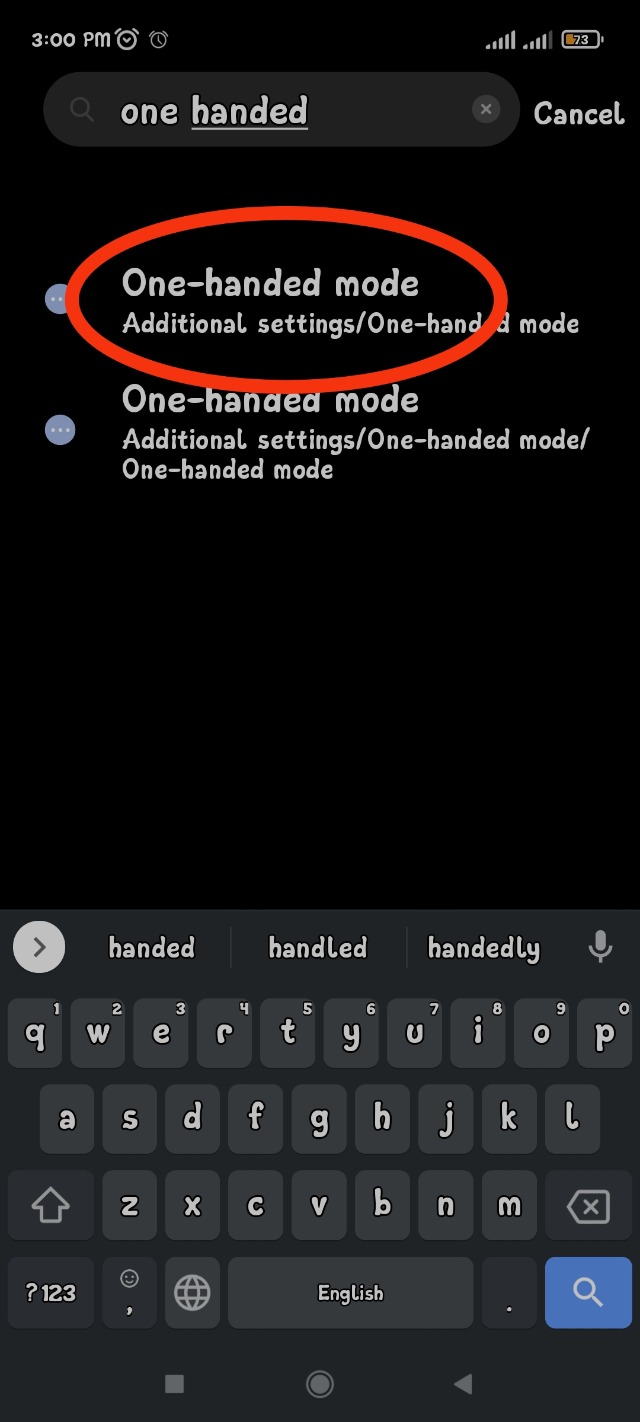 One Handed Mode হচ্ছে মোবাইল এর ছোট্ট একটি সেটিং বা ফিচার যার মাধ্যমে আপনি স্কিন ছোটো করে এক হাত দিয়ে আপনার ফোন টি ব্যবহার করতে পারবেন। এই One Handed Mode টি এনাবল করার জন্যে আপনাকে প্রথমে আপনার ফোনের সেটিং এ যেয়ে One Handed Mode লিখে সার্চ করতে হবে। এরপর প্রথম যেই অপশন টি আসবে সেটি সিলেক্ট করতে হবে।