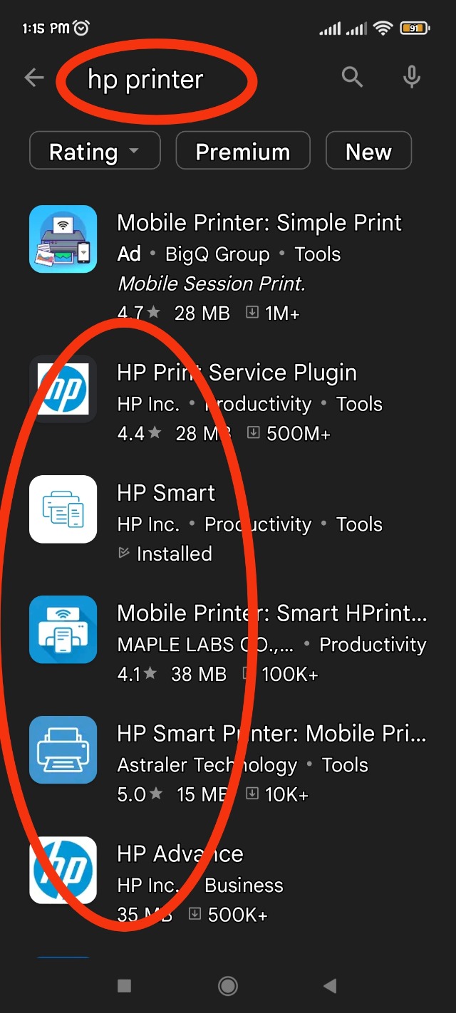 এরপর আপনার প্রিন্টার এর মডেলের অ্যাপস অথবা আপনার প্রিন্টার এর মডেলের সাথে প্রায়ই মিল আছে এমন একটি অ্যাপস ইন্সটল করে নিন। মনে রাখবেন, আপনি যেই কোম্পানির প্রিন্টার ব্যবহার করছেন একমাত্র সেই কোম্পানির নামের অ্যাপস অবশ্যই হতে হবে। অর্থাৎ, আপনার প্রিন্টার এর কোম্পানির নাম আর অ্যাপস এর নাম অবশ্যই মিল থাকতে হবে। ভুলেও অন্য কোনো কোম্পানির প্রিন্টার এর অ্যাপস ইনস্টল দিবেন না।
