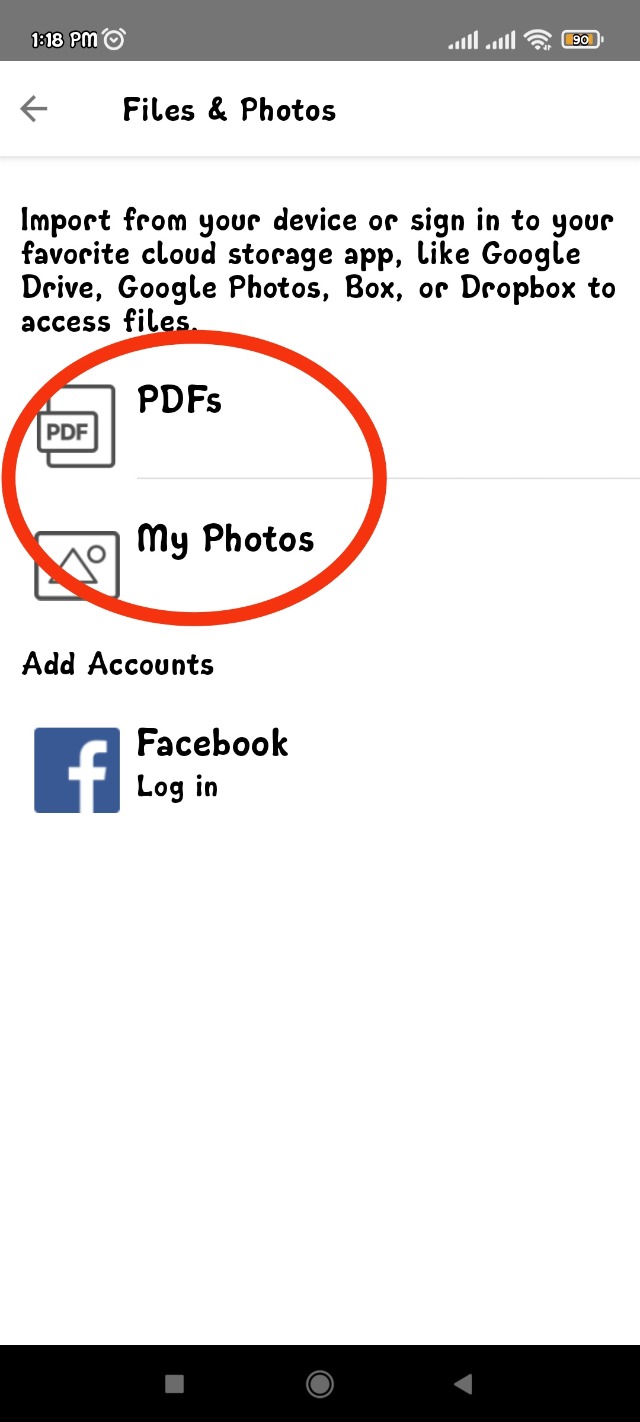 এরপর আপনার ফোনে পিডিএফ অথবা ছবি সিলেক্ট করার অপশন আসতে পারে। সেখানে আপনি যদি পিডিএফ প্রিন্ট করতে চান তাহলে পিডিএফ সিলেক্ট করুন। আর যদি পিকচার সিলেক্ট করতে চান তাহলে Print Photos এ ক্লিক করুন। ক্লিক করে আপনি আপনি যেই পিকচার বা ডকুমেন্ট টি প্রিন্ট করতে চান সেটি সিলেক্ট করুন।