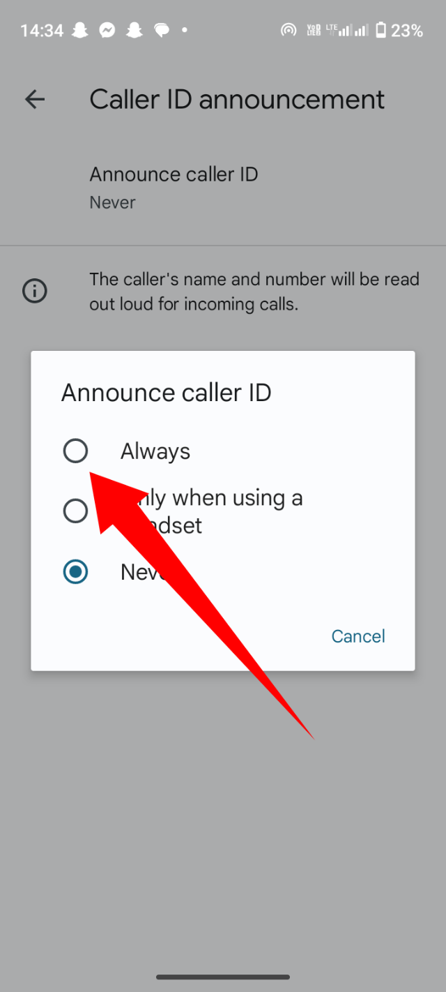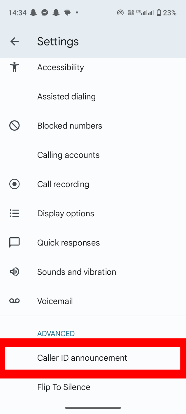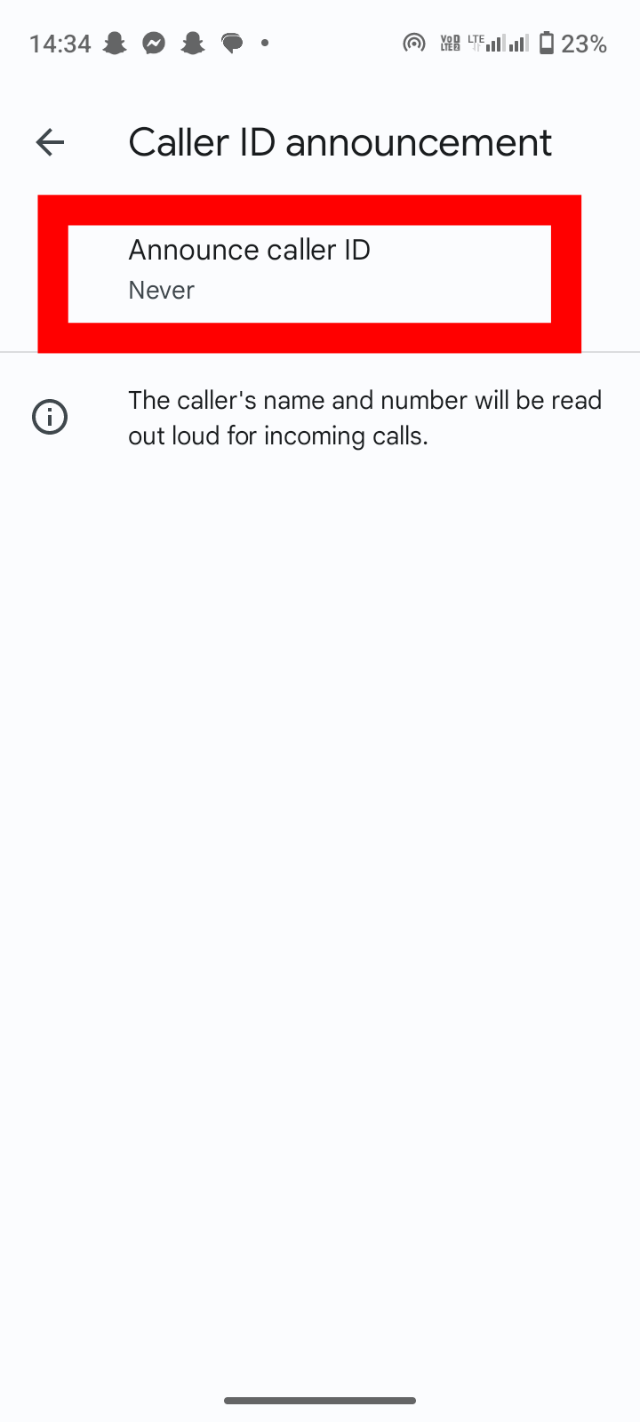 ৫. তারপর Announce Caller ID যে অপশন রয়েছে এটার উপর ক্লিক করবেন।