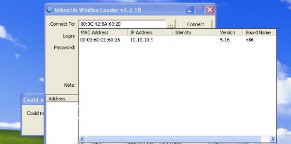 - ৩। এরপর winbox এর connect to box এর পাশে ... icon এ ক্লিক করুন। এখানে একটি IP address এবং একটি MAC Address show করবে। Mac Address টিতে ক্লিক করুন তারপর login এ টাইপ করুন admin এরপর connect a click করুন। Password দেওয়ার প্রয়োজন নাই।