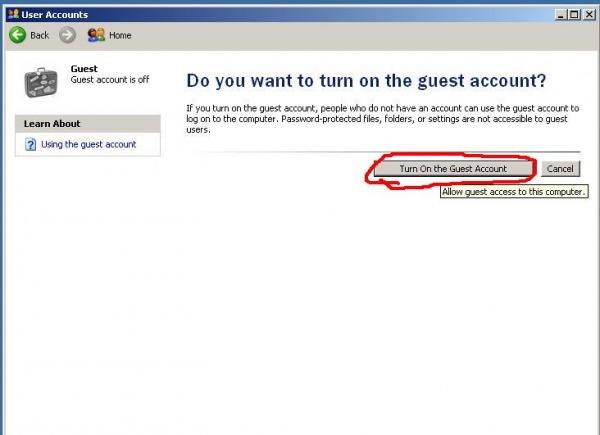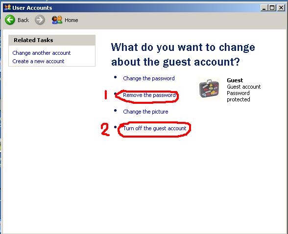 ◘ Turn of the Guest Account ক্লিক করে Guest ইউজার টা অন করুন।