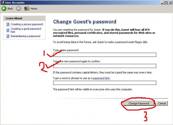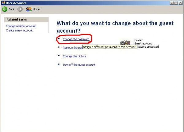 ◘ এবার পূর্বের ন্যায় Guest ইউজার ওপেন করে Change the password -এ ক্লিক করুন।
