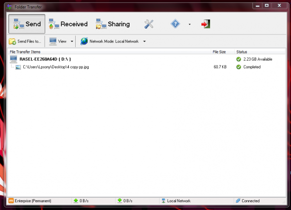 এখন আপনি ফাইল সেন্ড করতে পারবেন। ফাইল ফোল্ডার শেয়ার ও করতে পারবেন। আপনি ইচ্চা করলে ড্রাইভ এবং সিডি ড্রাইভ ও শেয়ার করতে পারবেন।আমি ভাইয়ার সাথে ফাইল আদান প্রদান করি। খুব দ্রুত ডাটা পার হয় ১৩ mb/s