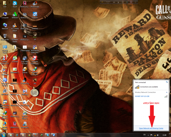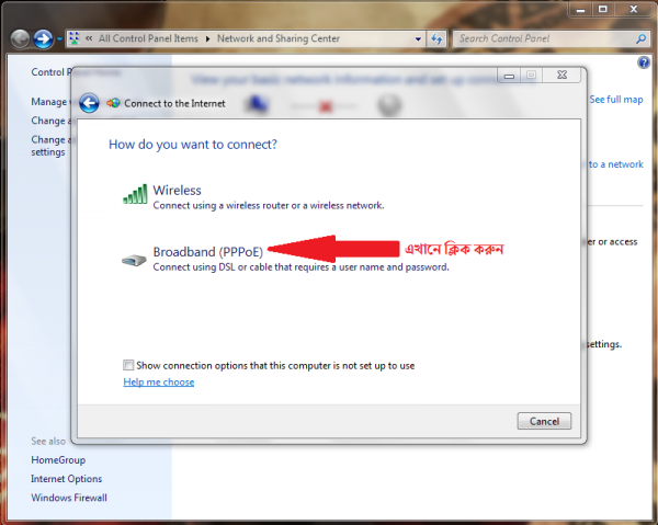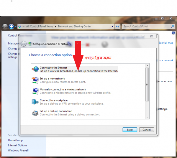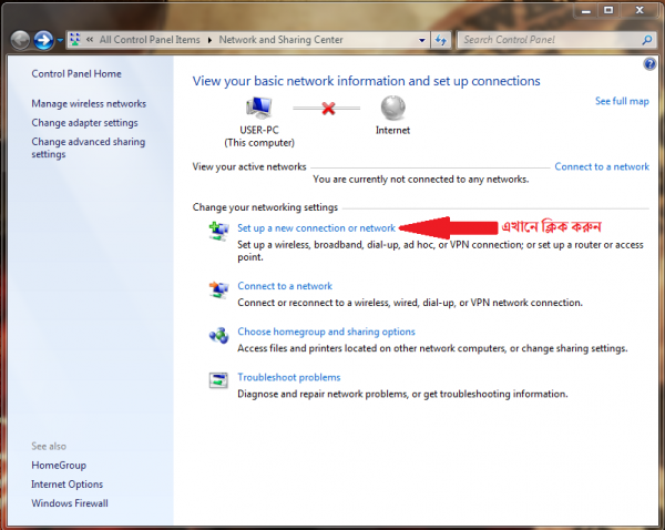 তার পর আবার Open Network and Sharing Center এ Click করেন।