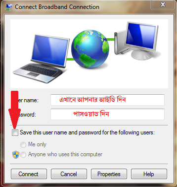 বিদ্রঃ আাপনার User ID এবং Password জানা না থাকলে Provider কে ফোন দিন