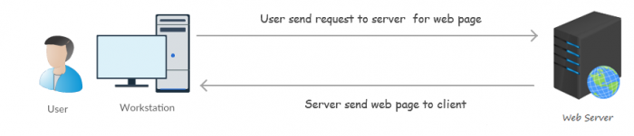 চিত্র ১.৬ - ওয়েব সার্ভার আসলে একধরনের ফাইল সার্ভার। এখানে ইউজার কোনো ফাইলের অনুরোধ পাঠায় সার্ভারে, সার্ভার সেই ফাইল ইউজারের নিকট পাঠায়।