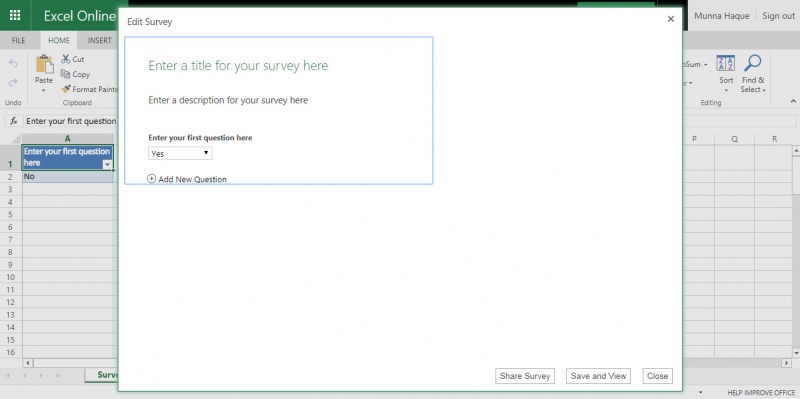 • এবং তারপর Create বাটনে ক্লিক করে  Excel survey তে