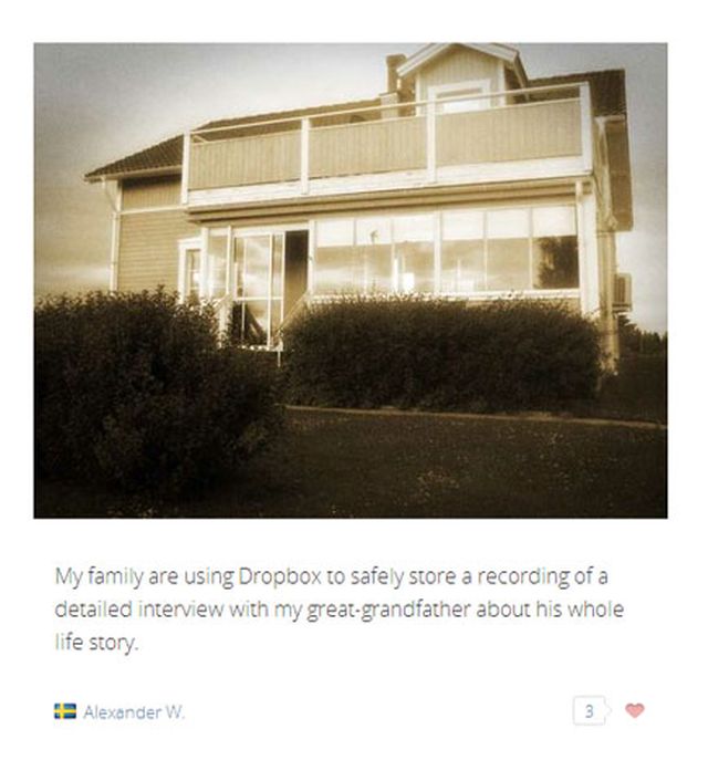যেখানে মেজরিটি ইউজাররা শুধু মাত্র ফাইল আর্কাইভ করার জন্য ড্রপবক্স ব্যবহার করে সেখানে এই সাইটে দারুন একটি postlflfv  আমি দেখলাম যে একজন ইউজার তার দাদার দাদার সকল ইন্টারভিউ রের্কড ড্রপবক্সে সেভ করে রেখেছে।