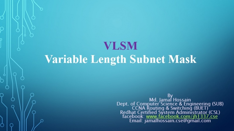 VLSM নেটওয়ার্কিং এর একটি অত্যন্ত গুরুত্বপূর্ণ টপিক। যারা CCNA করছো অথবা ইউনিভার্সিটিতে "কম্পিউটার নেটওয়ার্কিং" পড়ছো তাদের জন্য VLSM না জানলেই নয়। এখন কথা কথা হচ্ছে আমরা কেন VLSM করবো??? উত্তর হচ্ছে, যখন একটি আইপি এড্রেস দিয়ে কয়েকটি নেটওয়ার্কের হোস্টের/কম্পিউটারের সংখ্যা অনুযায়ী আইপি এসাইন করতে হয় ঠিক তখনই VLSM করতে হয় যেন যতটা পারা যায় আইপি গুলোর সদ্ব্যবহার করা যায়। তো চল শুরু করি।