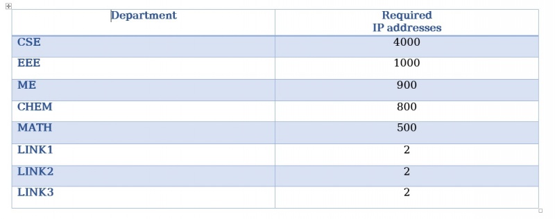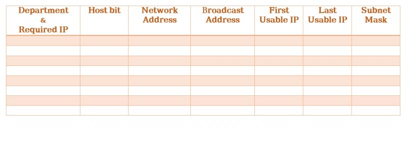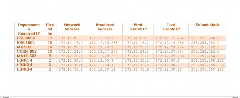 প্রথমে একটি প্রবলেম দিয়েই শুরু করি। ধরা যাক, কোন এক প্রতিষ্ঠানের বিভিন্ন Department এ নিচের তালিকা অনুযায়ী কম্পিউটার রয়েছে এবং আমাদের এ সবগুলো কম্পিউটারে IP Address দিতে হবে। একই সাথে সেই প্রতিষ্ঠানে থেকে আমাকে একটি IP Address Block 172.12.0.0/16 দিয়ে দেওয়া হয়েছে যা দিয়ে প্রত্যেক Department এর জন্য আলাদা আলাদা LAN (Network) গঠন করতে হবে।