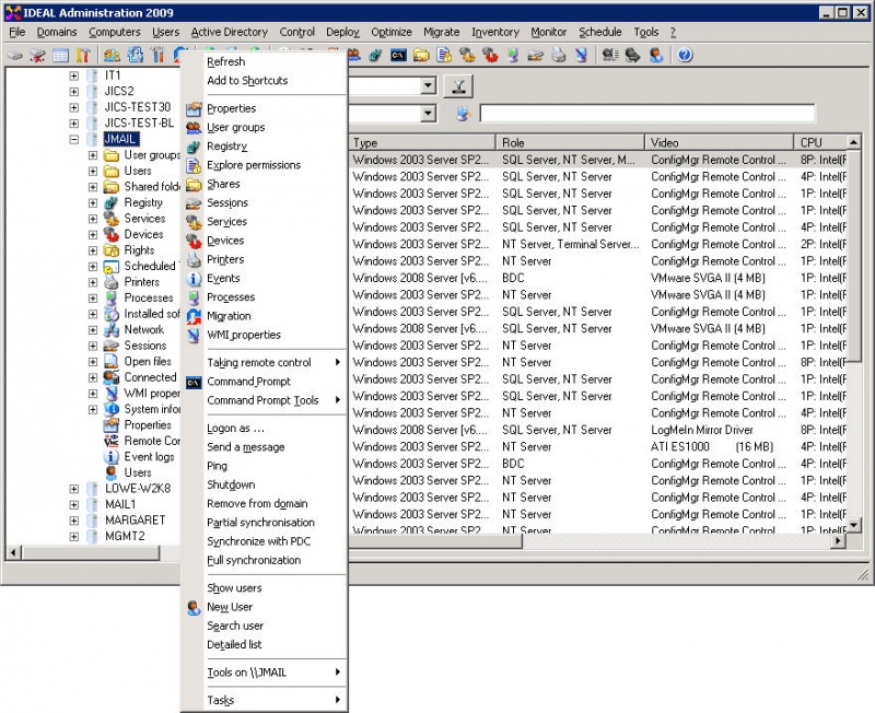 সার্ভারের উপর মাউচের বাম বাটন ক্লিক করেছি তাই আপনারা এই সার্ভারের জন্য উপলব্ধ বিকল্প একটি সম্পূর্ণ তালিকা দেখতে পারবেন। Add to shortcut এর মাধ্যমে আপনি একটি কমান্ড প্রম্পট খুলতে পারেন, সিস্টেমে একটি তথ্য পাঠাতে পারবেন, এছাড়া আপনি একটি ডোমেন ডিলেক্ট করা, সিঙ্ক্রোনাইজ করা, সার্ভারের সাথে সংযুক্ত ব্যবহারকারীদের তালিকা এবং আরও অনেক কিছু পাবেন শর্টকাট মেনুর মাধ্যমে।