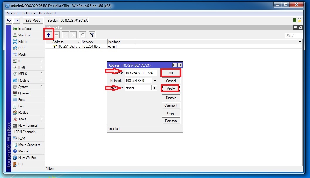 প্রথমে আমরা ম্যাক এড্রেস দিয়ে রাউটারে প্রবেশ করব। করার পর আমরা আইপি> থেকে > অ্যাড্রেস যাব। নিচের চিত্রের মত
