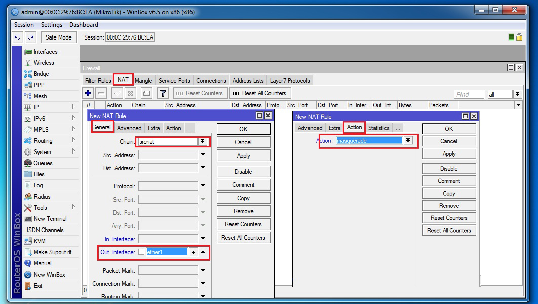 আপনি এইখানে এসে ন্যাট ট্যাব ক্লিক করবেন তারপর নিচের চিত্রের মত আসবে। সেখান থেকে নিউ ন্যাট ক্রিয়েট করবেন। এই জন্য অ্যাড(প্লাসসাইন +) ক্লিক করলে আরেকটি পেজ আসবে সেখানে জেনারেল গিয়ে > চেইন আসবেন> এসআরসি ন্যাট সিলেক্ট করবেন> আউট ইন্টারফেস গিয়ে ইথার উল্লেখ করে দিবেন। পাবলিক আইপি যে ইন্টারফেসে কনফিগার করেছেন সেই ইন্টারফেস > তারপর অ্যাকশান যাবেন গিয়ে মাসকুরাইড সিলেক্ট করে > টিউমেন্ট গিয়ে NAT লিখে > অ্যাপ্লাই ও ওকে করে দিবেন। নিচের চিত্রের মত করে।