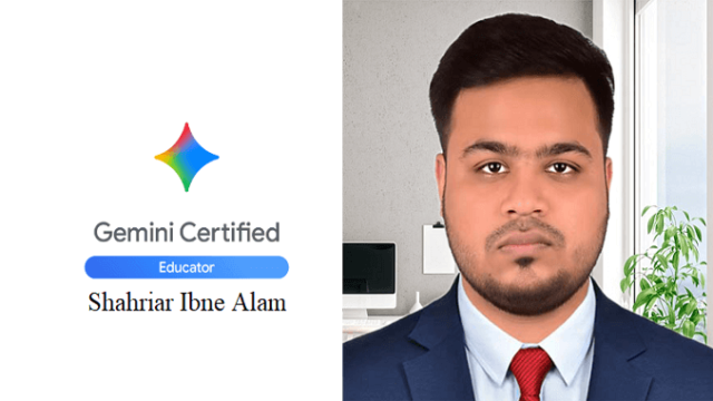 গুগল জেমিনাই (Gemini) হলো বর্তমান সময়ের অন্যতম শক্তিশালী এআই টুল। একজন সার্টিফাইড এডুকেটর হিসেবে শাহরিয়ার এখন থেকে শিক্ষা ক্ষেত্রে কৃত্রিম বুদ্ধিমত্তার সঠিক ও কার্যকর ব্যবহার নিশ্চিত করতে বিশেষ ভূমিকা রাখতে পারবেন। এই সার্টিফিকেশনটি প্রমাণ করে যে, তিনি এআই টুল ব্যবহার করে পাঠদান পদ্ধতি আধুনিকায়ন, শিক্ষার্থীদের ব্যক্তিগত শিখন অভিজ্ঞতা উন্নত করা এবং শিক্ষা সংক্রান্ত প্রশাসনিক কাজগুলো আরও সহজতর করতে দক্ষ।