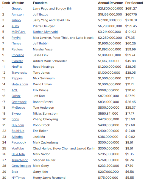 সবথেকে বেশী আয়কারক ওয়েবসাইট