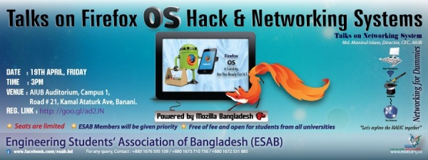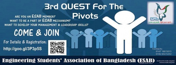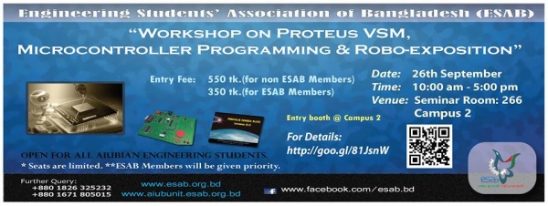এসাবের ( Engineering Students Association of Bangladesh) শুধু মাত্র AIUB তে আয়োজিত কিছু প্রোগ্রামের ব্যানার পিক দেয়া হল ।