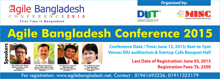 ডিজিটাল বাংলাদেশ বাস্তবায়নের কার্যক্রম আরও গতিশীল করতে সফটওয়্যার ডেভলোপমেন্ট মেথোডোলজি অ্যাজাইল এর ওপর বাংলাদেশে প্রথমবারের মত অনুষ্ঠিত হতে যাচ্ছে অ্যাজাইল বাংলাদেশ কনফারেন্স-২০১৫। বর্তমান সময়ে সফটওয়্যার ডেভেলপমেন্টের ক্ষেত্রে অ্যাজাইল অত্যন্ত কার্যকর ও জনপ্রিয় মেথডোলজি।