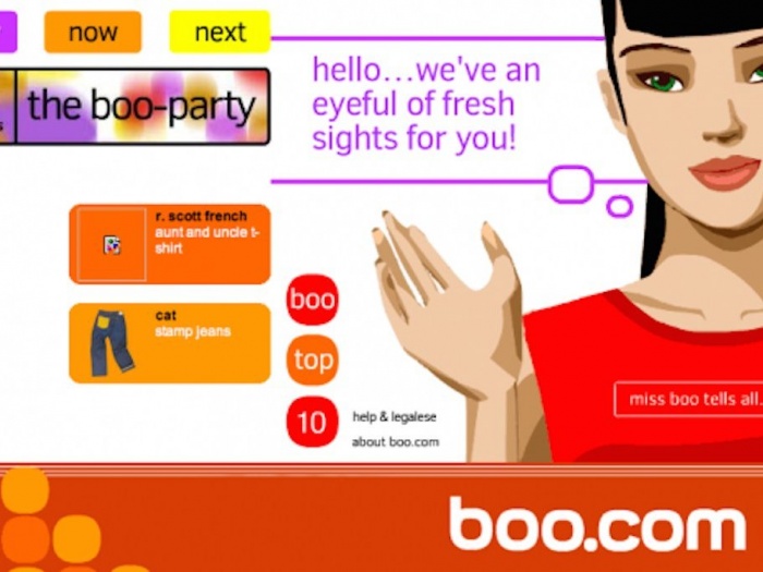 বৃটিশ অনলাইন ফ্যাশন রিটেইলার Boo.com ১৯৯৯ সালে তৈরী হয়। মাত্র ১৮মাস পরে কোম্পানীটি ১৩৫ মিলিয়ন ডলারের ক্ষতির সম্মখীন হয়ে বন্ধ হয়ে যায়। ২০০ সালের মে মাসে কোম্পানীটি এদের বাদবাকী জিনিসপত্র ২ মিলিয়ন ডলারেরও কম দামে বিক্রি করে দেয়।