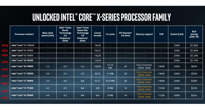 এখন পর্যন্ত শুধু মাত্র ১০ কোর ইন্টেল কোর আই৯-৭৯০০এক্স প্রসেসরটি আমেরিকায় পাওয়া যাচ্ছে। ১৮টি কোর বিশিষ্ট প্রসেসরটি এ বছরের অক্টোবরে মুক্তি পাবার কথা রয়েছে। আর সিরিজের বাকি প্রসেসরগুলো এ বছরের শেষের দিকে ধীরে ধীরে মুক্তি পাবে।
