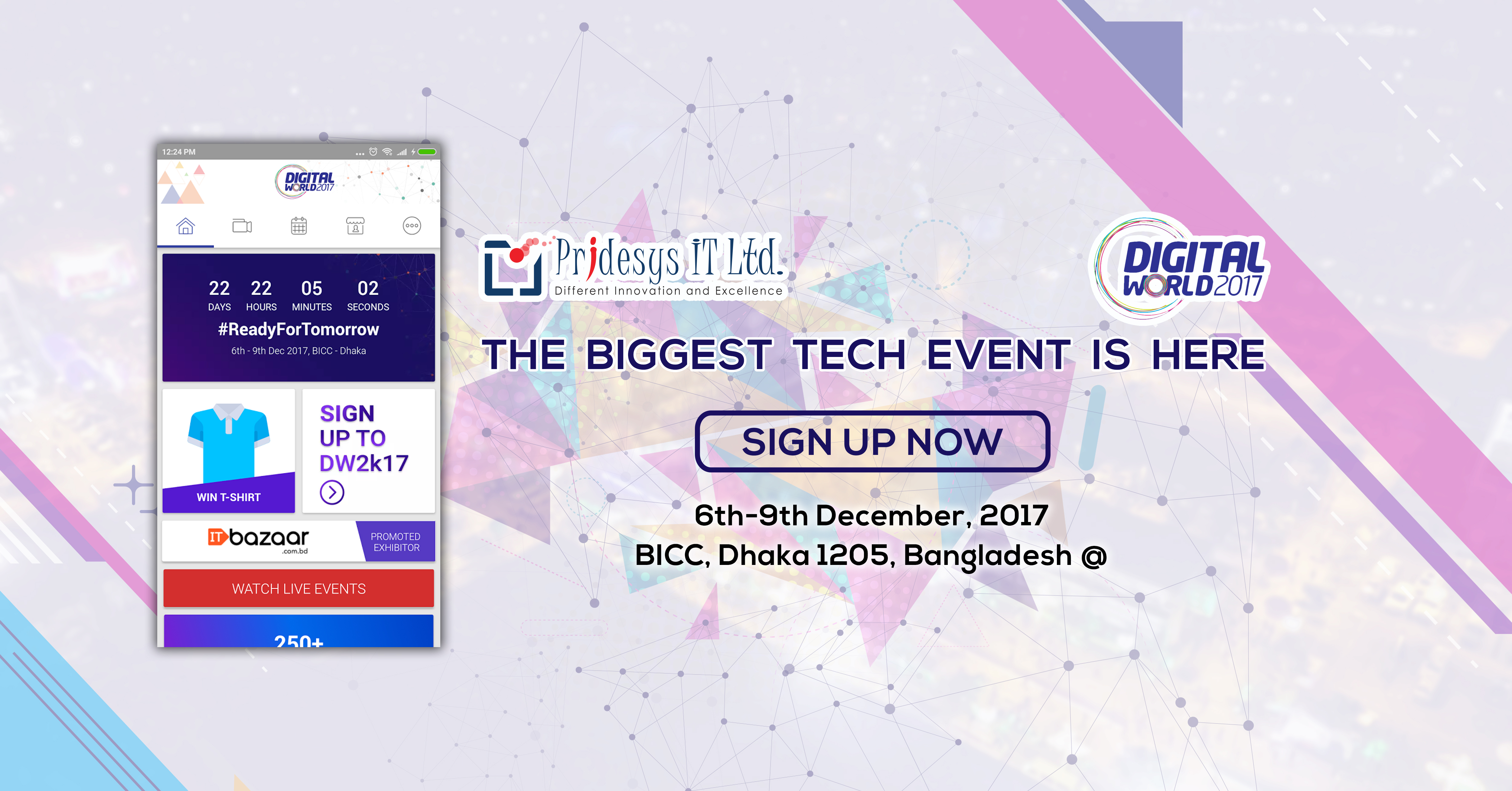 Pridesys IT Ltd. বিদেশী সফটওয়্যার কোম্পানি এর সঙ্গে প্রতিযোগিতা করে কিভাবে একটি সত্যিকার ডিজিটাল বাংলাদেশ গড়ার প্রচেষ্টা করছে সেটি সবার সামনে তুলে ধরার জন্য তথ্য প্রযুক্তির মহাযজ্ঞ “ডিজিটাল ওয়ার্ল্ড-২০১৭” এ অংশগ্রহণ করতে যাচ্ছে।