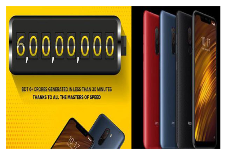 বাজারে এসেই বাজিমাত করেছে শাওমির পোকো এফ১। মাত্র ৩০ মিনিটে বিক্রি হয়েছে ৬ কোটি টাকার হ্যান্ডসেট।