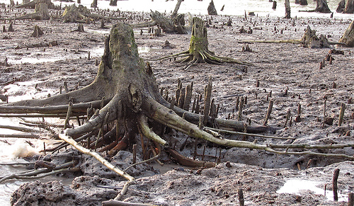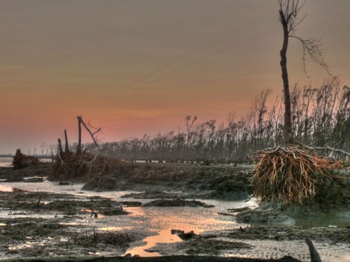 • উঁচু অঞ্চলে সাদুপানির গতিপথ পরিবর্তনের কারণে ভারতীয় ম্যানগ্রোভ আর্দ্রভূমিগুলোর অনেকগুলোতে সাদুপানির প্রাবাহ ১৯ শতকের শেষের দিক থেকে উল্লেখযোগ্যভাবে কমে গিয়েছে। একই সাথে নিও-টেকটনিক গতির কারণে বেঙ্গল বেসিনও পূর্বের দিকে সামান্য ঢালু হয়ে গিয়েছে, যার ফলে সাদু পানির বৃহত্তর অংশ চলে আসছে বাংলাদেশ অংশের সুন্দরবনে। ফলশ্রতিতে বাংলাদেশ অংশের সুন্দরবনে লবণাক্ততার পরিমাণ ভারতীয় অংশের তুলনায় অনেক কম। ১৯৯০ সালের এক গবেষণাপত্রে বলা হয়েছে , “হিমালয়ের প্রাকৃতিক পরিবেশের অবনতি বা “গ্রিন হাউস” এর কারণে সমুদ্রের উচ্চতা বৃদ্ধি পেয়ে বাংলাদেশের বন্যা পরিস্থিতিকে আশঙ্কাজনক করে তুলেছে এমন কোনো প্রমাণ পাওয়া যায়নি। যাদিও, ২০০৭ খ্রিস্টাব্দে -“জলবায়ুর পরিবর্তন ও বিশ্ব ঐতিহ্যের পাঠ” শীর্ষক ইউনেস্কোর রিপোর্টে বলা হয়েছে যে মনুষ্যসৃষ্ট অন্যান্য কারণে সমুদ্রপৃষ্ঠের যে ৪৫ সে.মি. উচ্চতা বৃদ্ধি হয়েছে, তা সহ মনুষ্যসৃষ্ট আরও নানাবিধ কারণে সুন্দরবনের ৭৫ শতাংশ ধংস হয়ে যেতে পারে (জলবায়ু পরিবর্তনের উপর আলোচনায় প্রাকাশিত আন্তঃসরকার পরিষদের মত অনুযায়ী ২১ শতকের মধ্যেই)।