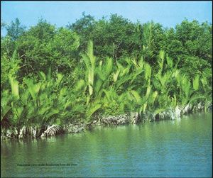 • ব-দ্বীপিয় নয় এমন অন্যান্য উপকূলীয় ম্যানগ্রোভ বনভূমি এবং উচ্চভূমির বনাঞ্চলের তুলনায় বাংলাদেশের ম্যানগ্রোভ বনভূমিতে উদ্ভিদ জীবনপ্রবাহের ব্যাপক পার্থক্য রয়েছে। পূর্ববর্তীটির তুলনায় Rhizophoraceae এর গুরুত্ব কম। উদ্ভিদ জীবনচক্রের ভিন্নতা ব্যাখ্যা করা হয়েছে উত্তর-পূর্বে বিশুদ্ধ পানি ও নিম্ন লবণাক্ততার প্রভাব এবং পানি নিষ্কাশন ও পলি সঞ্চয়ের ভিত্তিতে।