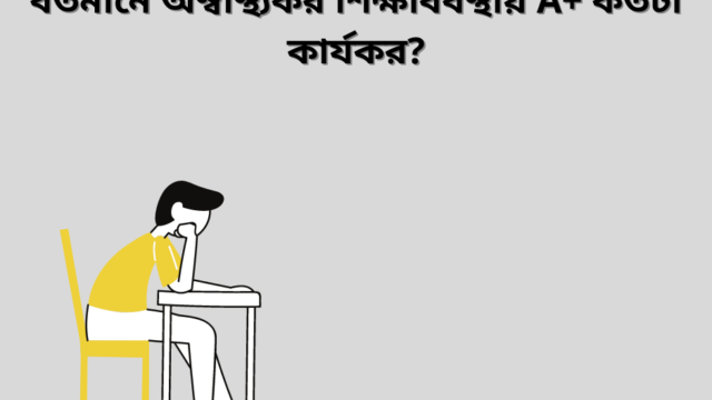 বাংলাদেশের শিক্ষা ব্যবস্থা বর্তমানে কোন দৌড় প্রতিযোগিতায় অংশগ্রহণকারী দৌড়বীদদের চেয়ে কোন অংশেই কম নয়। এই প্রতিযোগিতায় অংশগ্রহণ কাড়ি খেলোয়াড়দের (শিক্ষার্থীরা) প্রত্যেকের লক্ষ্যই থাকে A+। অবশ্য খেলোয়াড় নয় বরং তাদের কোচ অথাৎ বাবা মায়ের চাপিয়ে দেওয়া এ এক চরম পলিসি।