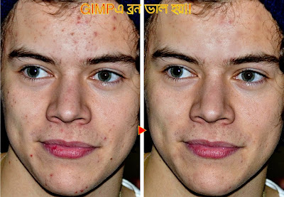 চেহারাতে মেকআপ না থাকলে অনেক সময়েই ছবি তুললে সেই ছবিতে মুখের অমসৃন ত্বক, ব্রন ইত্যাদি বিকটভাবে ফুটে ওঠে। এরকম ছবি প্রকাশ করতে লজ্জা লাগাই স্বাভাবিক। তাই একটা সহজ মেরামতির কেরামতিতে সেটা ঠিক করা যায় ঠিক উপরের ছবির মত। এটা বিনামূল্যের ওপেনসোর্স সফটওয়্যার GIMP দিয়ে করার কয়েকটা পদ্ধতি আছে। আমি একটা সহজ পদ্ধতি দেখাচ্ছি - blur ব্যবহার করে এর আগেও আরেকটা টিউটোরিয়াল দিয়েছিলাম, এটাতে পার্থক্য হল ঘোলা করা লেয়ারটা নিচে রাখতে হবে।