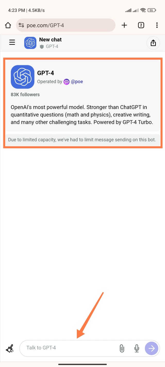 ৬. তারপর দেখুন বন্ধুরা আমরা কিন্তু Chat GPT-4 এর ফ্রি এক্সেস পেয়ে গেছি। আপনারা চাইলে এভাবেই Chat GPT-4 ফ্রিতেই ব্যবহার করতে পারবেন।