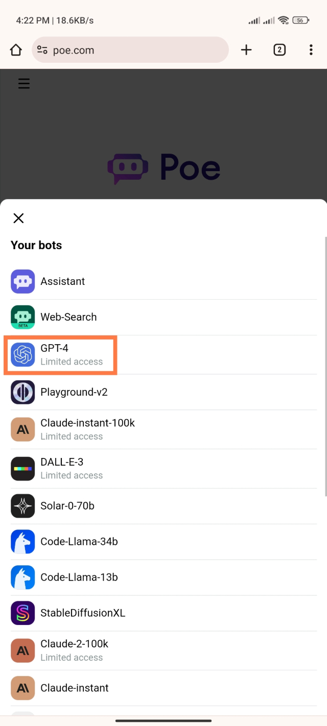 ১. Chat GPT-4 ফ্রি ব্যবহার করার জন্য Poe Website টিতে ভিজিট করুন। ওয়েবসাইট লিংক টিউনের শেষে দিয়ে দিবো।