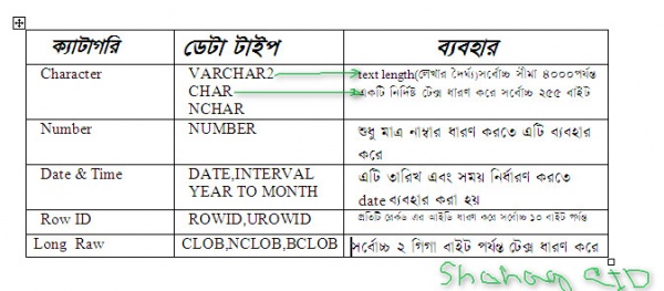 - ওরাকল ডেটা টাইপ