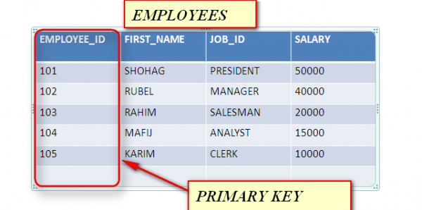 প্রাইমারি কী হচ্ছে্ এমন একটি কলাম বা একাধিক কলামের সমষ্টি যা টেবিলরে প্রতিটি রের্কড আলাদা আলাদা নির্দেশ করে । মনে রাখবনে এটি কোন ডুপ্লিকেট মান গ্রহন করবে না এবং এটি কোন Null বা অজানা মান গ্রহন করবে না । চিত্র অনুসরণ করুন