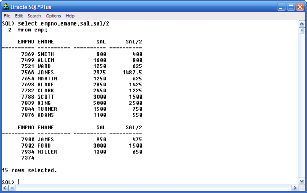 ORACLE একটি শক্তিশালী ল্যাংগুয়েজ হিসাবে বিভিন্ন কার্যকারী অপারেটর রয়েছে SQL*PLUS এ । অপারেটর =কার্য পরিচালনা করা অর্থাৎ আপনি যখন টেবিলের মধ্যে যোগ,বিয়োগ,গুন ভাগ করার প্রয়োজন পড়ে তখন নিম্ন উপায়ে কাজ করা যায়।