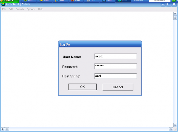 ওরাকল লগঅন করার সময় আপনাকে অবশ্যই "SCOTT"দিয়ে ডেটাবেজ সংযোগ করতে হবে ।