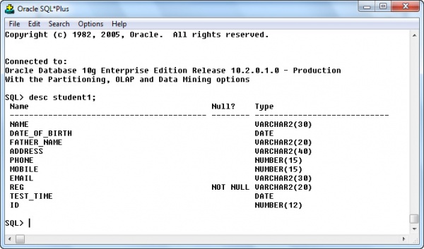 উপরে ফর্মটি ভাল ভাবে লক্ষ্য করুন আমি এখন কলাম গুলোকে টেবিল তৈরি করব । প্রথমে করি Sql*plus Connect করি