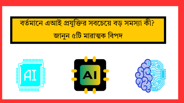 বর্তমান যুগ প্রযুক্তির যুগ, আর এই প্রযুক্তির কেন্দ্রে আছে কৃত্রিম বুদ্ধিমত্তা বা এআই (Artificial Intelligence)। আমাদের চারপাশে এর প্রভাব ক্রমশ বাড়ছে – স্মার্টফোন থেকে শুরু করে স্বাস্থ্যসেবা, শিক্ষা, এমনকি মহাকাশ গবেষণাতেও এআই নিজের পদচিহ্ন রাখছে। এআই শুধু একটি প্রযুক্তি নয়, এটি এমন একটি শক্তি যা আমাদের জীবনযাপন, কাজ এবং চিন্তাভাবনার পদ্ধতিকে সম্পূর্ণ বদলে দিচ্ছে। এর অসাধারণ ক্ষমতা আমাদের মুগ্ধ করে, যেখানে জটিল সমস্যা সমাধানের পাশাপাশি অসাধ্যকে সাধন করার সম্ভাবনা দেখাচ্ছে। তবে, এই দ্রুত উন্নয়ন এবং সীমাহীন সম্ভাবনার পাশাপাশি কিছু গুরুতর বিপদও লুকিয়ে আছে, যা নিয়ে আমাদের সচেতন হওয়া জরুরি। এই আর্টিকেলে আমরা এআই প্রযুক্তির এমন পাঁচটি মারাত্মক সমস্যা নিয়ে বিস্তারিত আলোচনা করব, যা আমাদের ভবিষ্যৎকে প্রভাবিত করতে পারে।