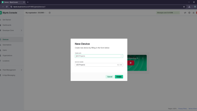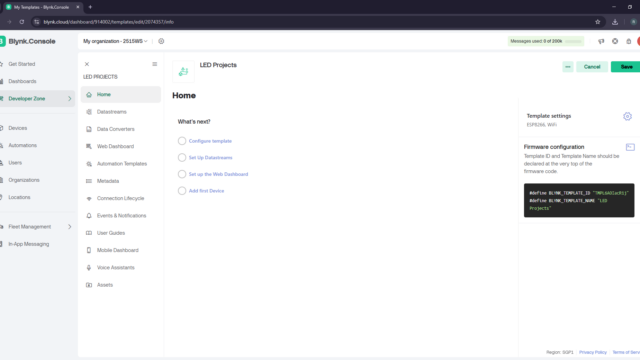 সাথে সাথে একটি Template ক্রিয়েট হয়ে যাবে। এখন বাম পাশের LED Project এর সাইডবার থেকে Datastreams ক্লিক করি।