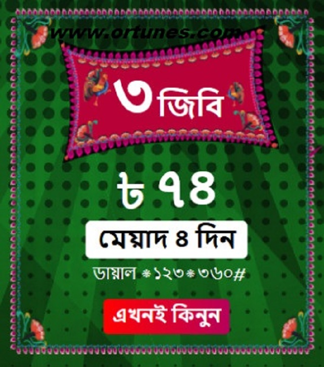 ৩ জিবি ইন্টারনেট ৩ দিন = ৭৪ টাকা