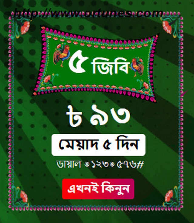 ৫ জিবি ইন্টারনেট ৫ দিন = ৯৫ টাকা