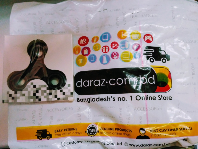 আমি ১৭ তারিখে অর্ডার করি এবং আজ হাতে পাই। আগে Fidget Spinner নিয়ে কিছু কথা। একটি Fidget স্পিনার হল একটি খেলনা। এটি ধাতু বা প্লাস্টিক থেকে তৈরি একটি মাল্টি লেব সমতল গঠন কেন্দ্র মধ্যে একটি ভারবহন গঠিত। অ্যান্টিঅক্সিডেন্ট বা মনস্তাত্ত্বিক চাপের জন্য মুক্তির প্রক্রিয়া হিসাবে অভিনয় করার মাধ্যমে ফোকাসিং বা বিচ্ছুরিত সমস্যা (যেমন এডিএইচডি, অটিজম, বা উদ্বেগযুক্ত) নিয়ে সমস্যাগ্রস্ত ব্যক্তিদের সাহায্য করার জন্য এই খেলনাটি বিজ্ঞাপিত হয়েছে। বিশেষজ্ঞদের বিভক্ত করা হয়, কিছু এই দাবি সমর্থনকারী এবং অন্যদের তার বৈজ্ঞানিক ভিত্তিতে বিতর্ক সঙ্গে, বিতর্ক যে খেলনা বিক্ষিপ্ত হতে পারে। Fidget স্পিনার ২017 সালে জনপ্রিয় খেলনা হয়ে উঠেছিল, যদিও একই ধরনের ডিভাইসগুলি ইতিমধ্যেই 1993 সালে আবিষ্কৃত হয়েছে। প্রায়ই স্বাস্থ্যের সুবিধার দাবিতে এই খেলনাটি স্কুলছাত্রীদের মধ্যে জনপ্রিয় হয়ে উঠেছিল। কিছু স্কুলে স্পিনারদের বিক্ষোভের জন্য নিষিদ্ধ করা হয়েছিল, অন্য স্কুলগুলিতে এই খেলাটি ব্যবহার করা হতো।