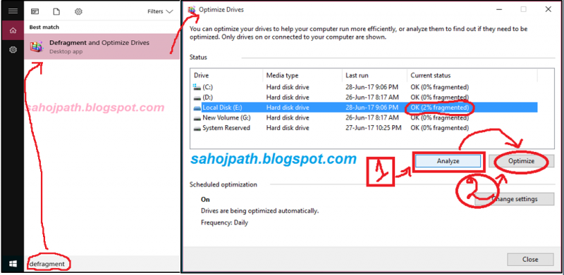 ১। Defragment and Optimize Drives এবং ২। Disk Cleanup