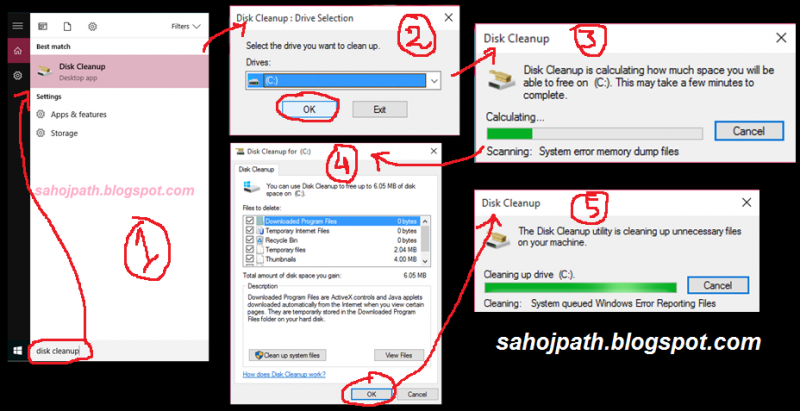 ২। Disk Cleanup – এই টুলটি আপনার হার্ড ড্রাইভে থাকা অপ্রয়োজনীয় ফাইলগুলিকে ডিলিট করে দেয়। অপ্রয়োজনীয় ফাইল বলতে বিভিন্ন লেফটওভ্যার ট্রেস, থাম্বনেইল,Temp এই ফাইল গুলিকেই বোঝায়। এই টুল ব্যবহার করলে আপনার সংরক্ষিত ফাইলগুলির যেমন – ডকুমেন্ট, অডিও, মুভি এই ফাইলগুলির কোন ক্ষতি হবে না। হার্ড ড্রাইভে এই অপ্রয়োজনীয় ফাইলগুলি না থাকলে পিসি অনেক গতিশীল হয়ে উঠবে। এই টুলটি ব্যবহার করবার জন্য Start Menu থেকে Disk Cleanup সার্চ করুন এবং চালু করুন। Disk Cleanup চালু করবার পর, আপনার ড্রাইভের পার্টিশনগুলি দেখতে পাবেন। প্রত্যেকটি পার্টিশন আলাদা করে স্ক্যান করুন এবং ফাইলগুলি ডিলিট করুন। এই টুলটির ব্যবহারে আপনার পিসি অনেক গতিশীল হয়ে উঠবে। বুঝতে না পারলে নীচের চিত্র দেখুন।
