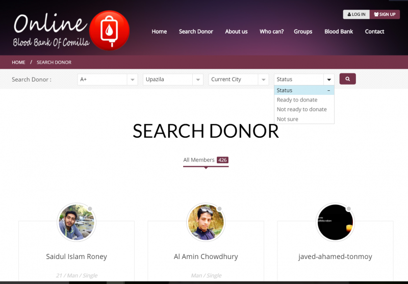 রক্তদাতাদের লিস্টঃ http://bloodbankcomilla.com/search-donor/