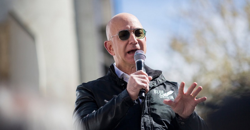 বিল গেটস যেখানে ২০১৬ সাল পর্যন্ত দান করেছেন ৩ হাজার ১০০ কোটি ডলার, সে তুলনায় ২০১৫ সাল পর্যন্ত বেজোস দান করেছেন মাত্র ১০ কোটি ডলার। অবশ্য গত জুনে নিজের সম্পদ কীভাবে মানবকল্যাণে ব্যয় করা যায় সে জন্য টুইটারে সবার পরামর্শ চান বেজোস। তবে ‘ব্লু অরিজিন’ নামের একটি কোম্পানি প্রতিষ্ঠা করেছেন, যেটি মহাকাশে পরিবহনের খরচ কমিয়ে আনার জন্য গবেষণা করছে। এ ছাড়া বেজোস ফ্যামিলি ফাউন্ডেশন নামের পারিবারিক দাতব্য প্রতিষ্ঠানেও অর্থ দেন তিনি।