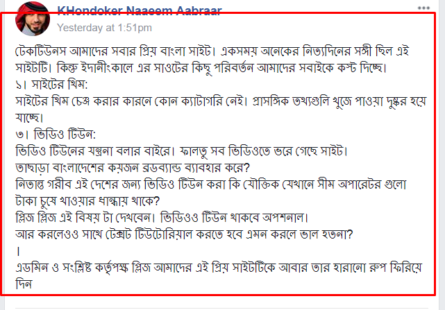 যাই হোক, আমি ছোট্ট মানুষ। আমার কথার দাম কেউ হয়তো দিবেন না। কিন্তু আমি একজন ভিজিটর হিসেবে আমার এটুকু বলার অধিকার আছে। TT অনেক ভালোবাসি। অনেক কিছু শিখছি। কিন্তু এখন অনেক খারাপ লাগে এই অবস্থা দেখে।
