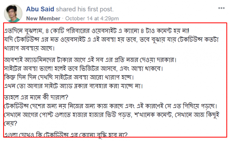 #এডমিন ভাই আপনি হয়তো বিষয় টি দেখবেন। আর মনে কষ্ট পেলে কিছু করার নাই আমার। কারণ আমরা যারা ভিজিটর আছি তাদের জন্যই আজ TT এতো দূর পর্যন্ত। আমরা না থাকলে কিছুই সম্ভব হতো না। অনেক কষ্ট হয় !!
