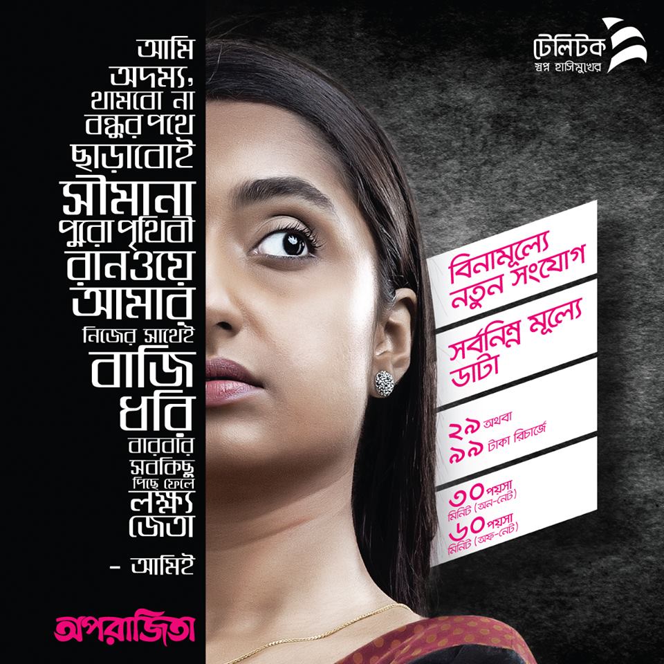টেলিটক নিয়ে আসলো নারীদেরজন্য দারুণ এক প্যাকেজ। অপরাজিতা নামে বিনামূল্যের এই প্যাকেজে অন্যান্য যে যে সুবিধা পাচ্ছেন তা হলঃ